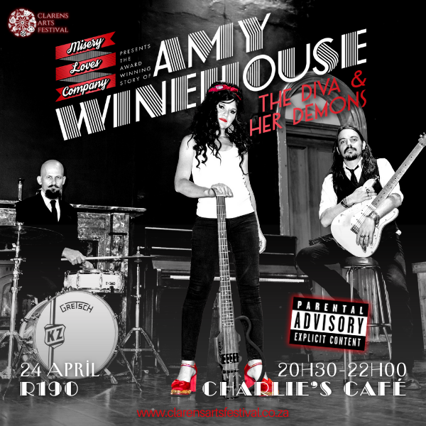 "AMY WINEHOUSE – THE DIVA and her DEMONS" unpacks the brief and impactful life of Amy Winehouse, a once-in-a-generation talent who captured the imagination of both the mainstream pop charts and lovers of the timeless soul music of yesteryear. The award-winning cautionary tale/tribute show features 12 of Amy’s hits, acoustically interpreted for a live trio, with Kerry Hiles (bass), Rob Thompson (guitar) and Kristo Zondagh (drums).
