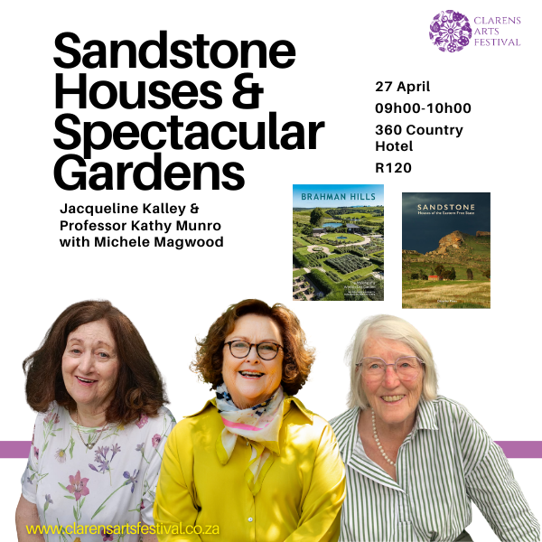 Two beautiful new books explore the history and architecture of the sandstone houses of the Free State, and a dazzling new garden in the Midlands. Authors JACQUELINE KALLEY and PROFESSOR KATHY MUNRO will unveil the history behind Sandstone Houses of the Eastern Free State, while MICHELE MAGWOOD will present her book Brahman Hills - The Making of a World Class Garden.