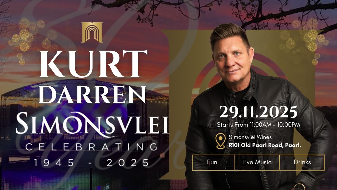- Kurt Darren (Headliner) – The legendary, multi-award-winning artist known for his Afrikaans pop and dance music who will close out the night.